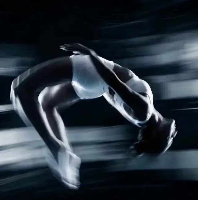 最后一个案例,我用的是一位体操运动员运动时的模糊剪影。我给了它一套 5 张参考图,每张都有很明显的动态拖影,构图也很极简,没有 logo 和文字,但整体质感很强。