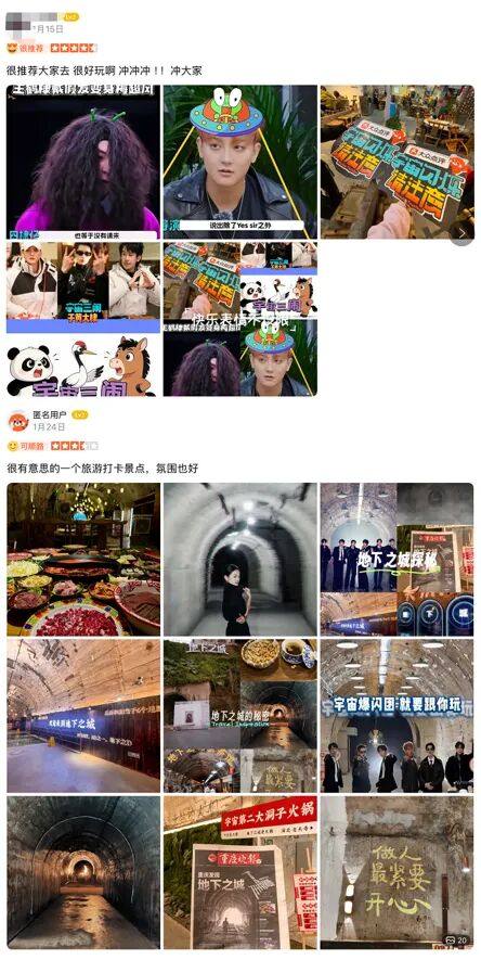 就目前来看,《宇宙闪烁请注意》播出至今,不仅弹幕中经常飘过“好想去玩”“等我去打卡”等类似的评论,大众点评上也开始出现节目同款的打卡内容。这一走向延续了综艺品牌合作从线上种草到线下消费的整体趋势,而对线下经济的长线反哺,反映出旅综巨大的内容和商业价值还有待进一步释放。