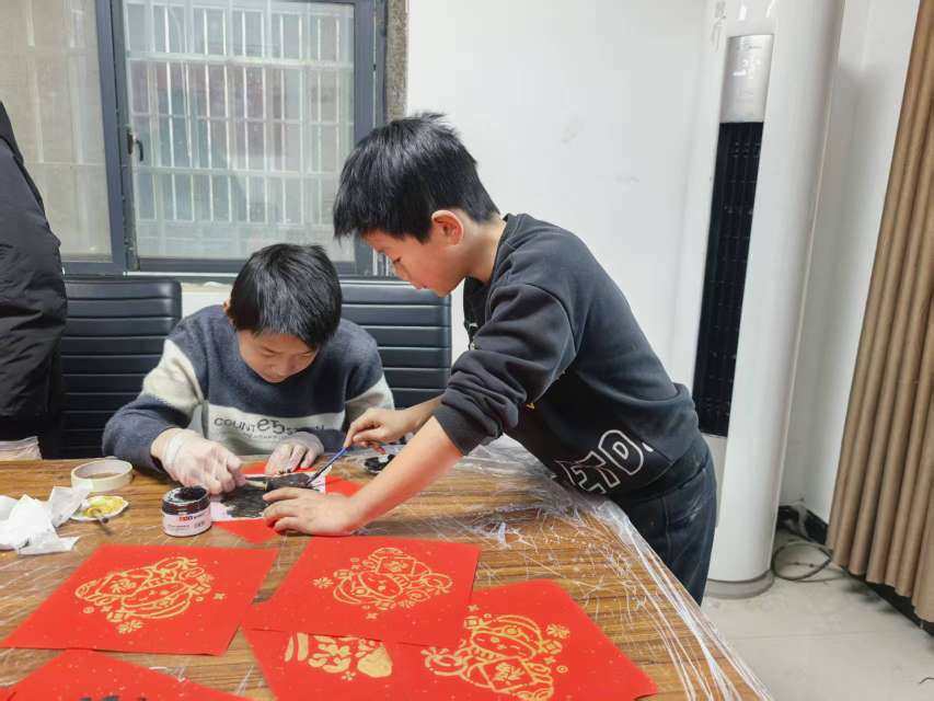 小年遇上非遗!滨河萌娃拓印“福”字迎新春