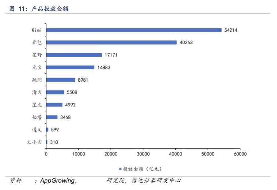 用户快速增长的同时,豆包的市场推广费用,也是字节历史上,所有破亿DAU产品中花费最低的。