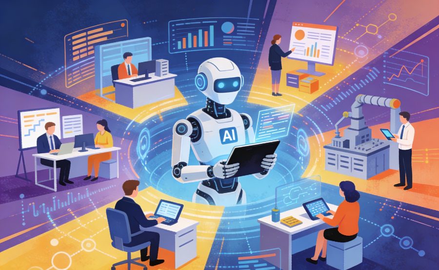 随着生成式AI如ChatGPT的迭代版本和自动化工具的普及,AI不再局限于科技行业,而是渗透到制造、零售、金融和服务等领域。