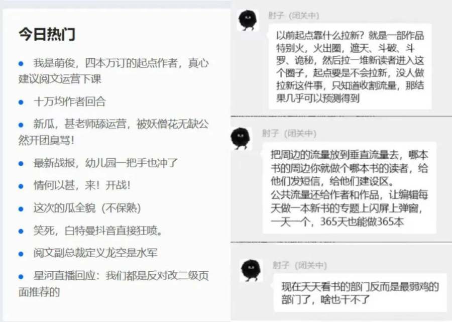 如果说算法推荐机制本身的问题还不足以引发众怒,那么起点总编辑“胡说”的一番言论则彻底点燃了创作者的愤怒情绪。他在某微信群中的发言被曝光后,迅速在网络上发酵。“写作是一种奢侈品,是艺术创作”,这句话看似高雅,实则暗藏玄机。在他看来,将写作视为稳定谋生方式、过度关注月度收入的作者,注定会陷入痛苦之中。