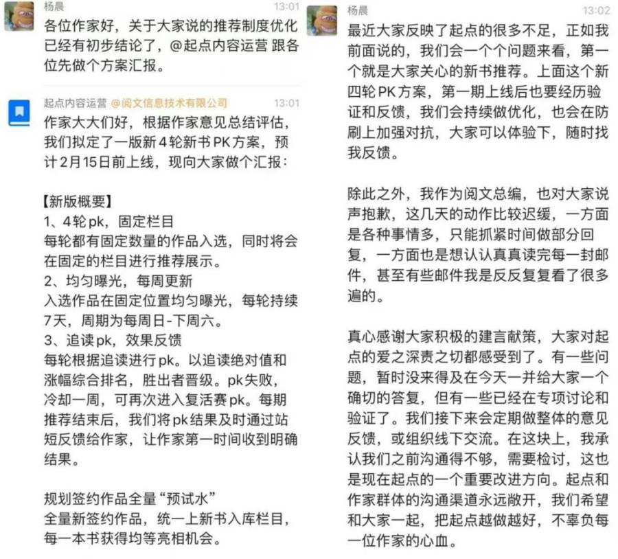 面对创作者的质疑与不满,阅文副总裁杨晨虽然出面回应并提供了沟通渠道,但在涉及增长与资源投入的关键问题上依然保持谨慎。例如,在被问及“起点为何不进行大规模引流”时,杨晨首先提到 2025 年新用户增长“好于预期”;当作者进一步追问具体投入,并对比七猫、番茄等竞争对手时,他的回答则转向强调拉新成本高、虚假用户多,最终以“已经尽力”收尾。