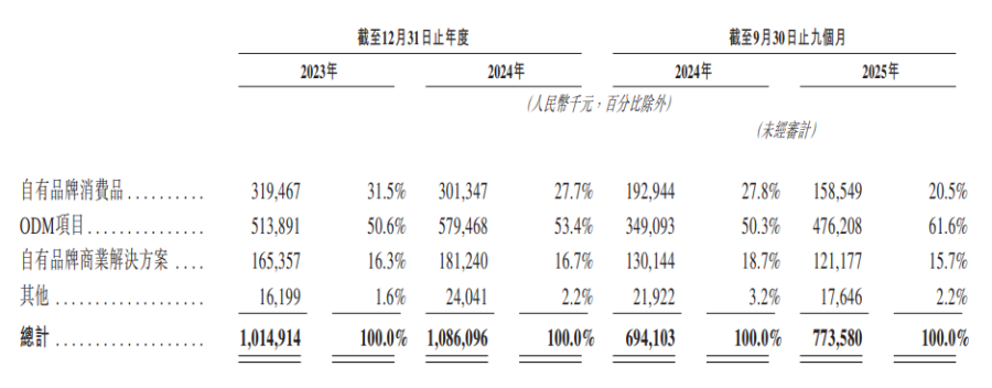 不过,作为头部智能门锁品牌,自有品牌并非鹿客科技的最大收入来源。招股书显示,2023年至2024年,鹿客科技来自ODM项目的收入在期内总收入中的占比均超过50%,2025年前三季度超过60%。与之形成对比的是,其来源于自有品牌消费者收入在总收入中的占比从2023年的31.5%下滑至2025年前三季度的20.5%。而较为依赖ODM业务也让公司面临客户集中风险。