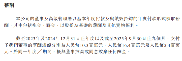 值得一提的是,2025年前九个月,公司支付给董事的薪酬总额骤降至240万元。若按此趋势,全年董事薪酬将较2024年的1640万元大幅收缩。