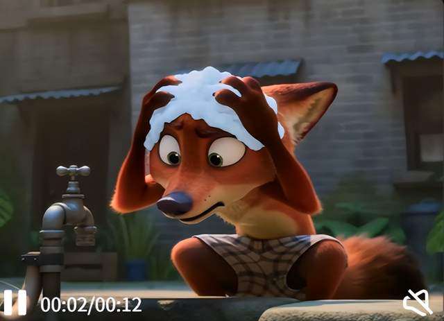 而下图中,就是抖音平台上,用户利用Seedance,将迪士尼《疯狂动物城》中的角色尼克狐·尼克,放在了《功夫》中模仿其角色酱爆洗头的视频。
