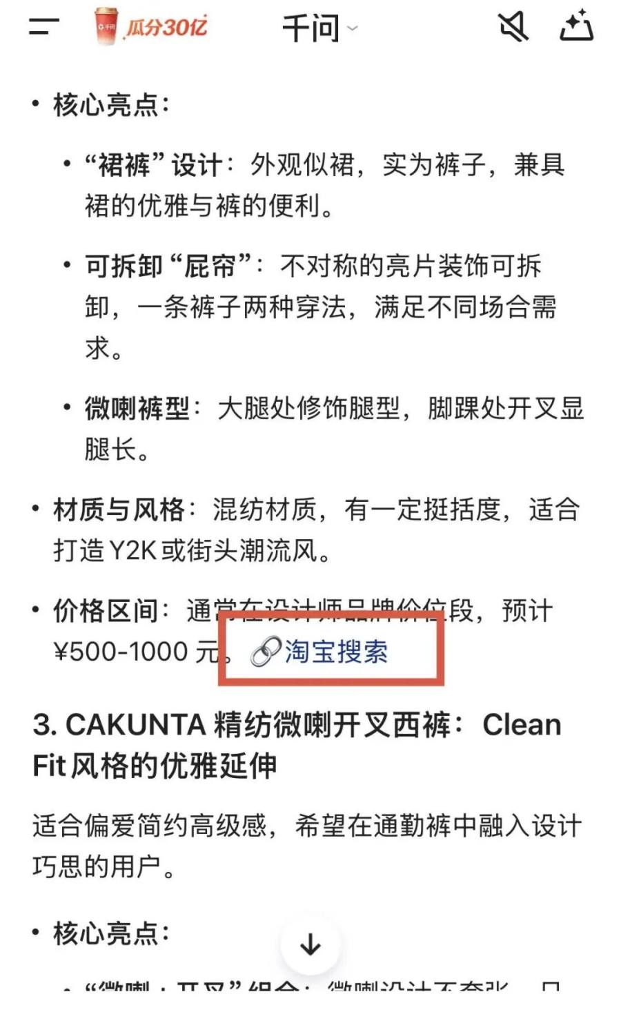 从每一个链接中的内容来看,这个功能实则是千问帮用户在淘宝中进行了搜索和关键词筛选,节省了用户搜索和筛选商品的时间。