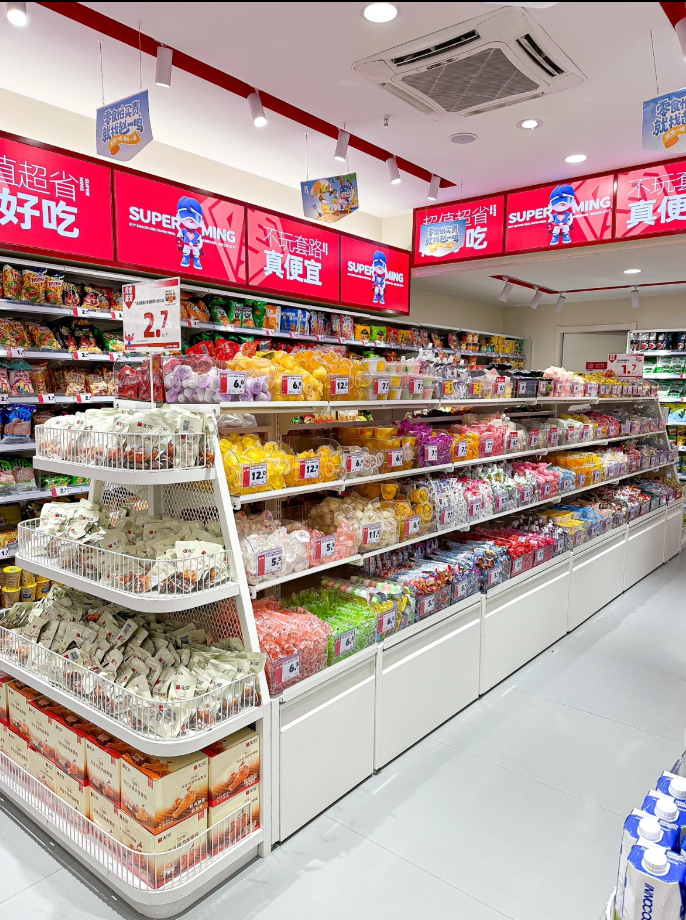 光辣条就能摆出一整排。网红款、地方特产、健康代餐,你能叫上名的零食,它货架上基本都有。