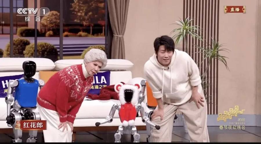 功夫表演《功夫机缘》活脱脱变成了智元机器人的产品发布会,全程展示机器人性能;蜜雪冰城的雪王不仅有定制节目,还唱满了广告歌。
