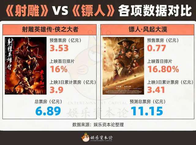 相比之下,只有武侠情怀,没有“顶流”这个第二传播落点的《镖人》,别看成本是《射雕》两倍有余,但在营销上等于是《射雕》再砍一臂,单薄得有点没招了。