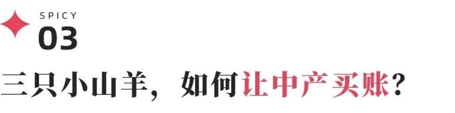 2022年,三只小山羊投入5000万和分众传媒合作在全国50个城市的写字楼电梯间进行广告轰炸,将一个横空出世的新品牌和“十九年专业做羊绒大衣”的心智植入消费者的大脑,用“裸穿不扎人”这种极限卖点直击人们对大衣厚重扎人的痛点,突出小羊绒是如何细腻柔软。品牌也在用明星效益来提升品牌价值,比如它从2023年开始邀请高圆圆、杨幂等有流量又有形象的明星代言,在提升审美话语权的同时,创造单款销售额破亿的成绩。