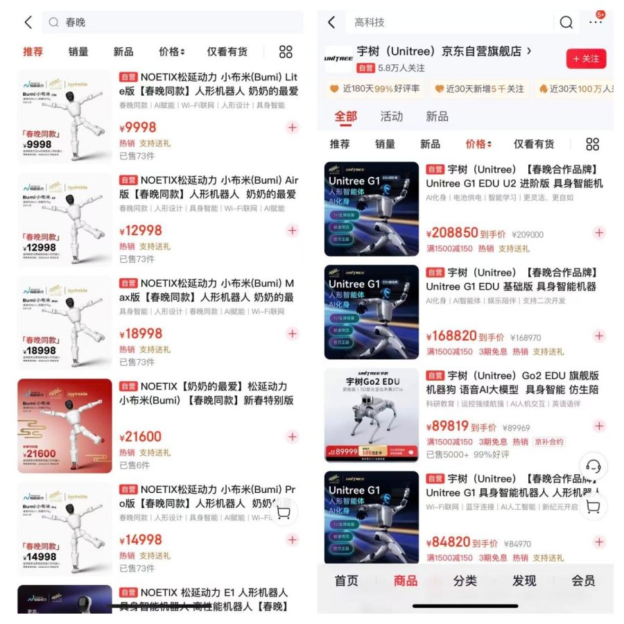 其次是在成本层面。如今,大部分机器人价格不算低。“NOETIX京东自营旗舰店”中,春晚同款小布米售价区间为9998元-21600元;春晚同款仿生人形机器人售价49.8万元。“宇树(Unitree)京东自营旗舰店”中,G1 EDU U2进阶版人形机器人到手价约为20.86万元。