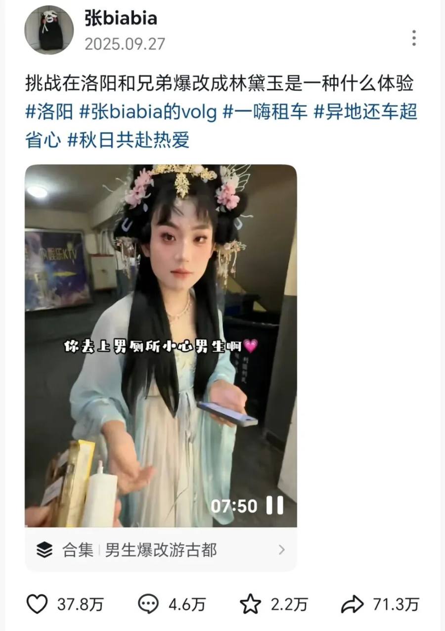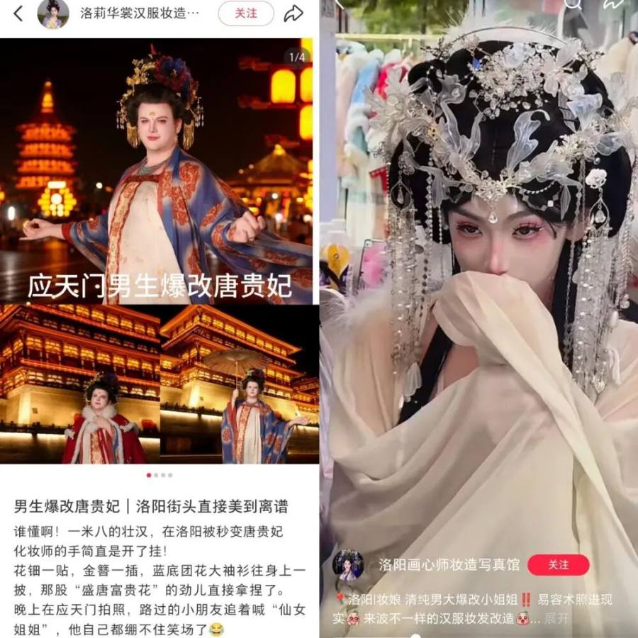 在洛阳的汉服语境里,“爆改”早已超越“化妆换头”,成了一个专有名词——特指男生穿女装。