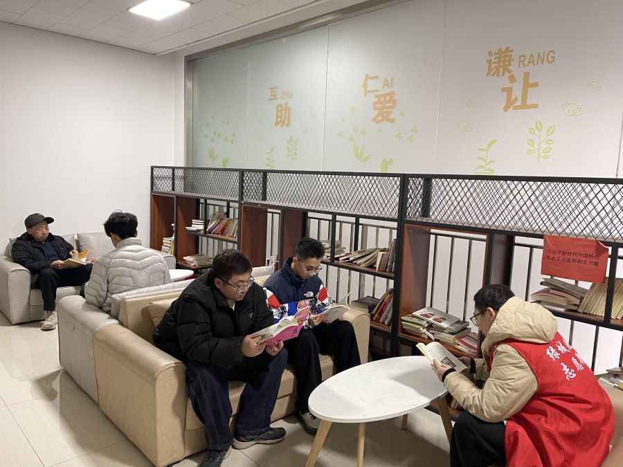 活动现场,社区新时代文明实践站图书角摆放着文学经典、养生保健、少儿读物、历史文化等各类书籍,满足不同群体阅读需求。居民们围坐在一起,静心品读、自由翻阅,老年居民品读经典散文、生活读物,在文字中感悟生活智慧;青少年认真阅读课外书籍,拓宽知识面、涵养书卷气;大家以书为媒、以读会友,分享阅读感悟、交流学习收获,在互动中增进邻里情谊,让书香浸润邻里日常。