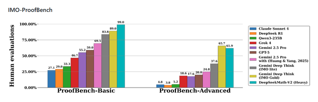 技术层面,DeepSeek在2025年保持着高频的模型迭代。2025年3月24日,DeepSeek-V3-0324发布;5月,旗舰模型R1完成迭代升级;9月29日,首个垂直领域专业模型DeepSeek-OCR发布;11月27日,推出第二代数学专业模型DeepSeekMath V2。在顶级大模型竞赛中始终位于第一梯队,技术创新也没有停滞。