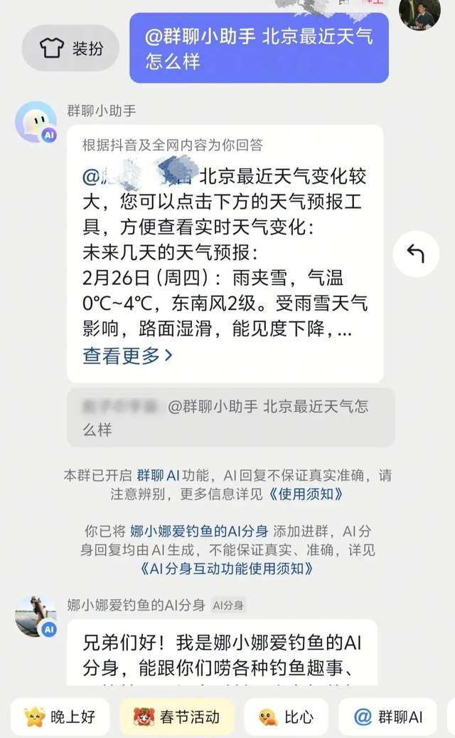 整个春节,抖音的动作集中在传统玩法上,包括春晚竖屏直播、抢红包、送礼品等,还推出了团购App“抖省省”。赶上了AI社交热度的群聊小助手,并不是抖音的营销重点。
