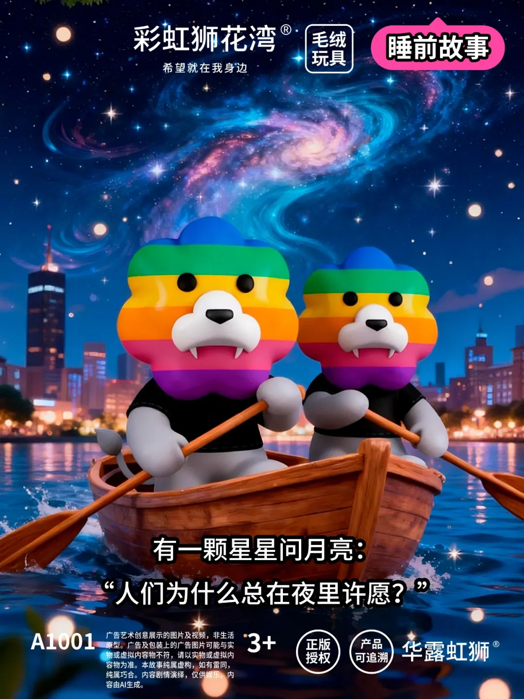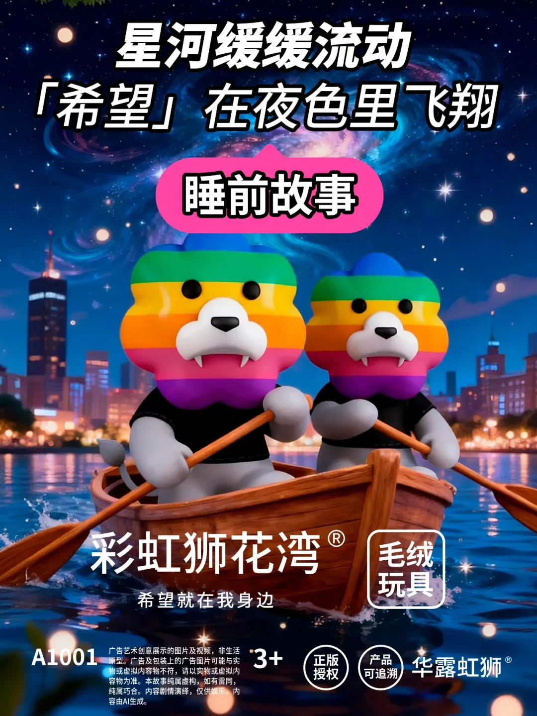 睡前故事:星河缓缓流动,希望在夜色里飞翔,「彩虹狮花湾」毛绒玩具