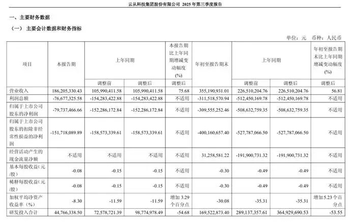 财务数据印证了这一策略的短期成效。2025年三季报显示:前三季度营收3.55亿元,同比上涨56.81%,净亏损3.10亿元,同比改善39.14%,更为关键的是,前三季度经营现金流净额实现扭亏为盈,达到3125.86万元,这是其上市以来首次经营性现金流转正。