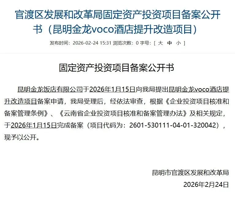 直到2025 年底,官渡区发改局的一份备案文件,打破了沉寂:金龙饭店不拆了,启动提升改造,引入洲际旗下高端品牌voco重新营业。