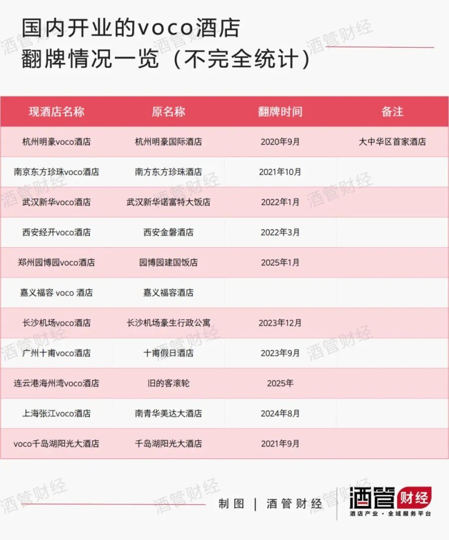 此前,据《酒管财经》不完全统计,在国内开业的voco酒店中存量翻牌项目比例非常大。