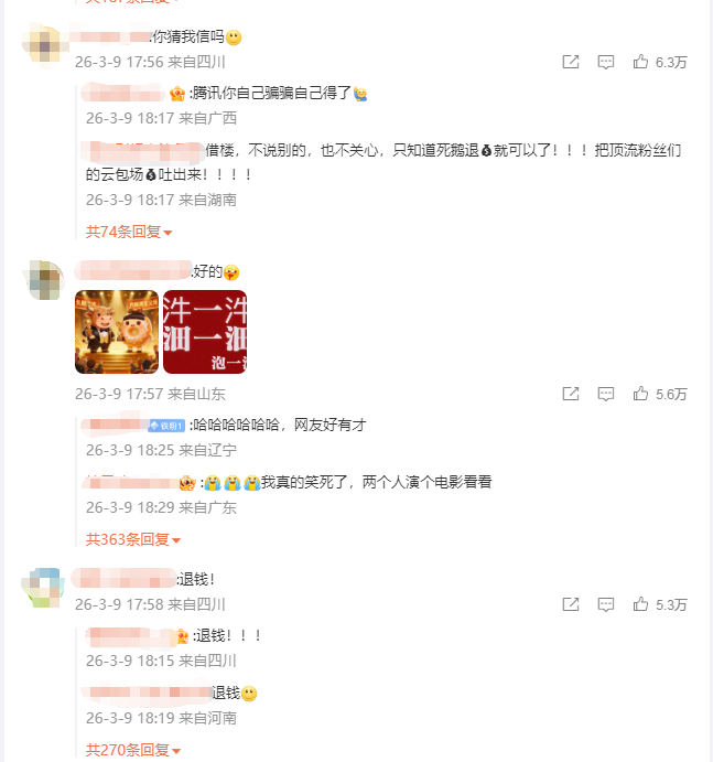 尽管腾讯视频作出了回应,但是依旧没有平息网友怒火,在腾讯视频回应文的评论区下,有网友反讽“你猜我信吗”,更有网友高喊“退钱”,舆论仍在发酵。