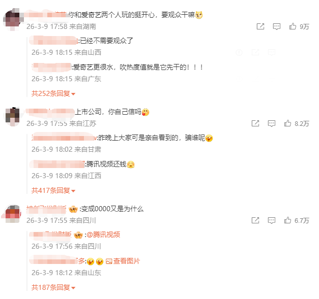 还有网友表示,“你(腾讯)和爱奇艺两个人玩的挺开心,要观众干嘛”,爱奇艺方面也难逃网友“批判”。