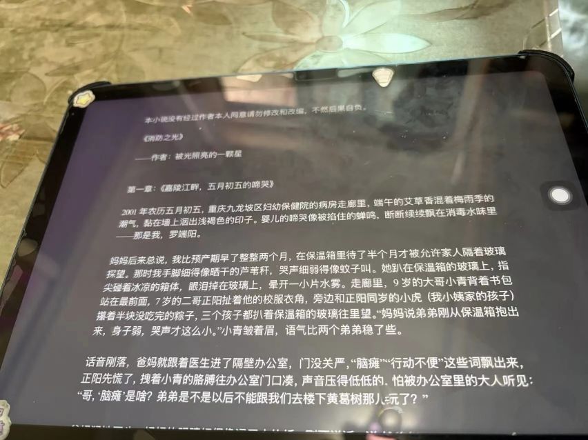 深夜的重庆,江风裹挟着山城的烟火气漫过窗棂,我逐字读完公众号「从彼岸到此岸」发布的《一根手指的重量:一个脑瘫青年的文学山河》,屏幕上的文字不再是冰冷的符号,而是化作重庆石坪桥那间60平米小屋内,一根颤抖却坚定的手指,在平板上敲出的生命回响。24岁的罗文鑫,因出生时脐带绕颈、缺氧窒息落下痉挛性脑瘫,终身无法行走、双手痉挛难伸,却用左手唯一能勉强操控的一根手指,耗时三月写下13万字自传体小说,笔名叫「被光照亮的一颗心」。这七个字,是他生命最精准的注脚:肉身被命运囚于方寸轮椅之上,灵魂却被文学与爱点亮,在文字的山河里,活成了自由的行者。这不是一篇刻意煽情的励志鸡汤,而是一段扎根烟火、带着血泪与温度的生命实录,它让我读懂:命运可以折断身体的翅膀,却永远禁锢不了灵魂的飞翔;苦难可以困住肉身的步履,却永远浇不灭热爱的星火。