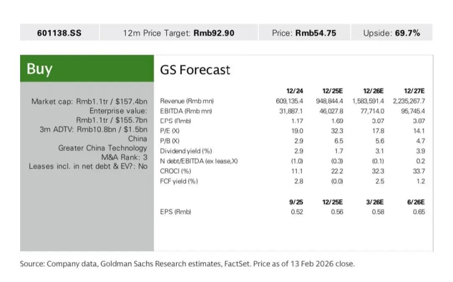 但从估值来看,市场已经在股价里计入了对AI服务器超级周期的高度乐观预期。高盛极其乐观的预期,也无非是看好后续订单的释放,包括AI服务器与1.6T交换机在2026—2027年的持续放量,在GB300、Rubin架构、CPO等下一代技术中的份额不降反升,以及AI基础设施投资周期至少延续3年甚至更久。