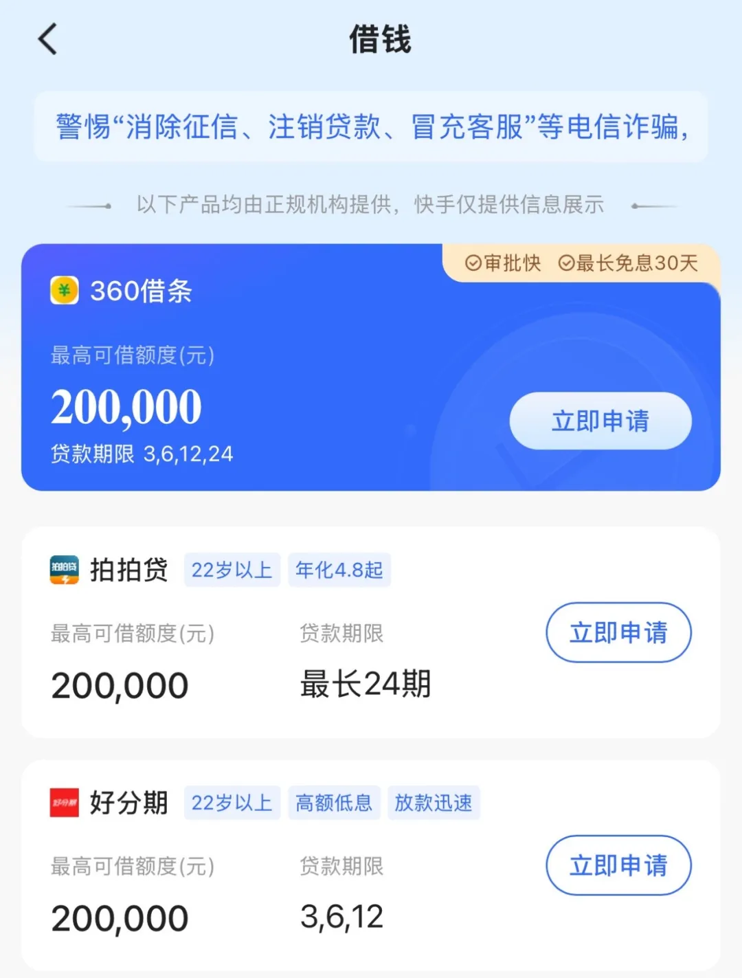 巨大的商业空间让快手迅速启动了金融业务的第一步——助贷导流模式。它在APP内上线“借钱”入口,接入360借条、拍拍贷等持牌机构的信贷产品,靠API分润模式赚取佣金。