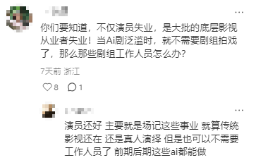而对比之下,传统负责协调场地、群演的制片等人力岗位的优势尽失,他们曾经引以为傲的沟通能力和组织协调能力,在AI的高效面前显得如此苍白无力。
