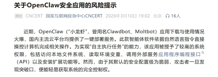 事实上,OpenClaw确实存在一定风险,工信部专家也公开表示,使用OpenClaw时,要注意6点,分别为使用最新版本;严格控制互联网暴露面;坚持最小权限原则;谨慎使用技能市场;防范社会工程学攻击和浏览器劫持;建立长效防护机制。