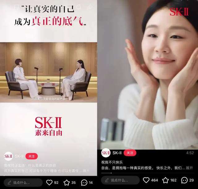 开年,金靖与SK-II合作的“祝我不只快乐”品牌短片、以及品牌挚友鲁豫与金靖的一段深度访谈,在社交平台刷屏,网友纷纷截屏金句主动二传。“看完才懂,被SK-II这次的走心狠狠共情”、“美是自由的副产品,鲁豫这句话真的封神”、“这大概是金靖搞笑的原因吧”......在这些评论中,不难判断这是一次有效的品牌表达。