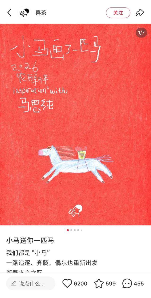 不久前喜茶与马思纯合作,请小马画了一匹马,推出了相应的手提袋、小卡等周边物料,可爱萌趣的小马吸引了很多粉丝路人下单。此次合作基于灵感创作,记录了马思纯画小马的过程,这种合作方式能够产出相对独特的产品,也有足够的情感浓度。