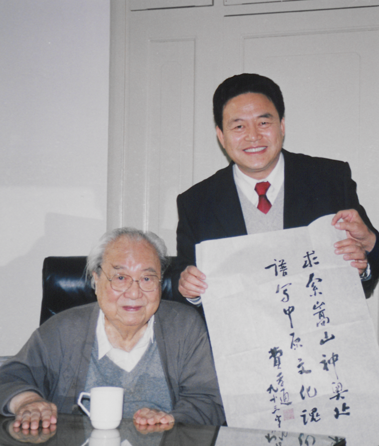 求索嵩山神奥处谱写中原文化魂——第七、八届全国人大常委会副委员长费孝通教授为张国臣《神奥嵩山》题词,贺新著问世(2003年5月王炎森摄)