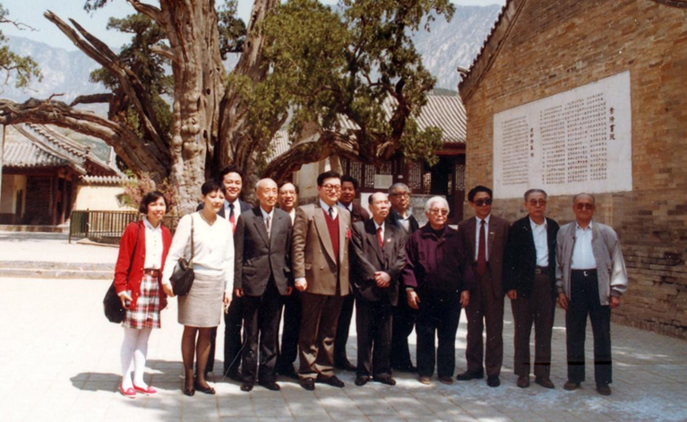 嵩阳书韵悠将军虬枝挺——张国臣向全国政协副主席马万祺(前中)、河南省委书记李长春(前左四)、省政协副主席李润田(前左三)介绍嵩阳书院文化(1993年)