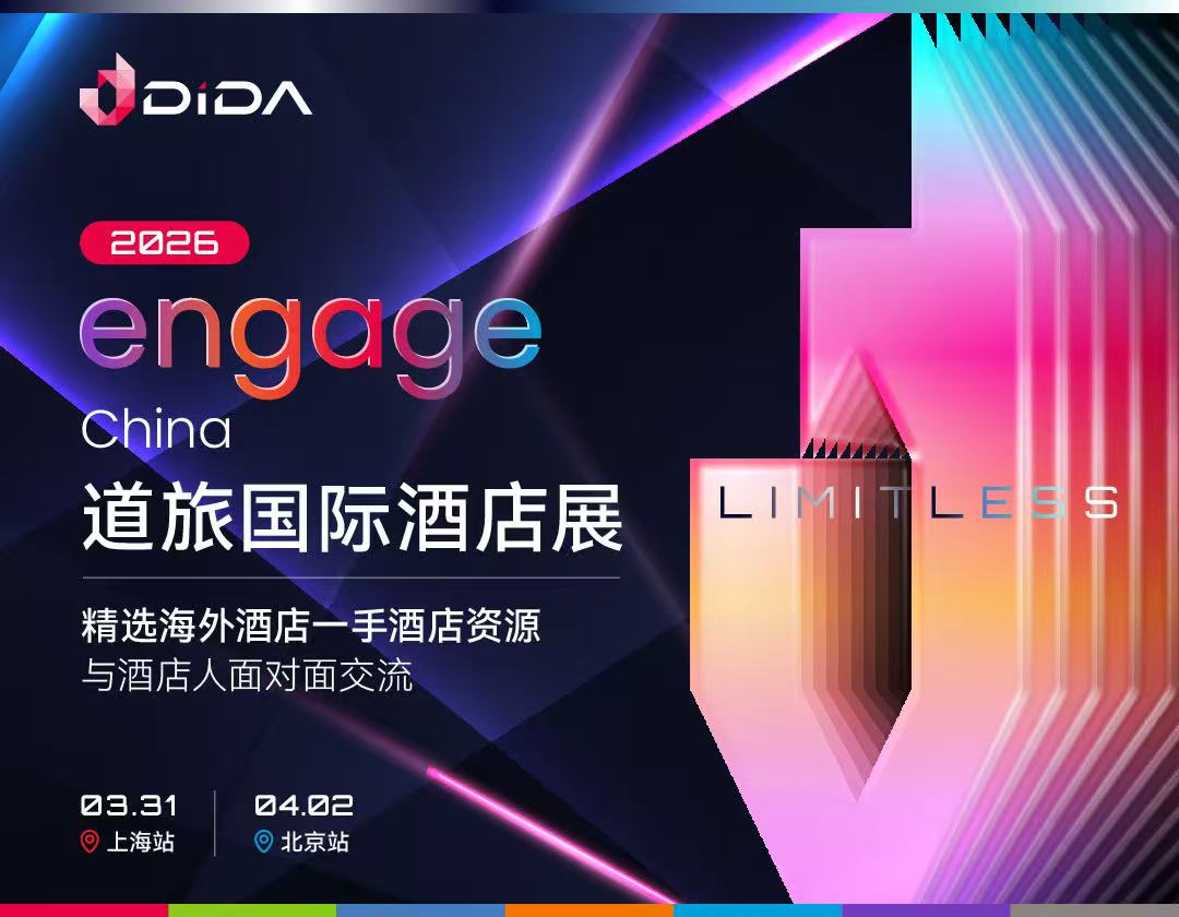 全球领先的旅游科技集团道旅(Dida)宣布,旗下专业B2B行业资源对接平台“道旅 Engage ”打造的国际酒店展中国站将于2026年3月31日在上海、4月2日在北京相继启幕。本届展会面向中国旅游同业,汇聚来自全球热门旅游目的地的逾80家国际酒店,打造高效、精准的供需对接舞台。