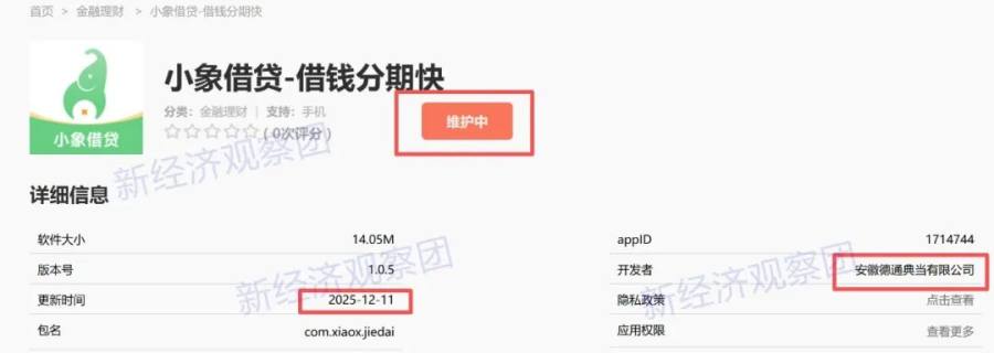 这6款未完成整改的APP中,包括安徽德通典当有限公司(下称“德通典当”)旗下的“小象借贷”,问题为“强制、频繁、过度索取权限”。