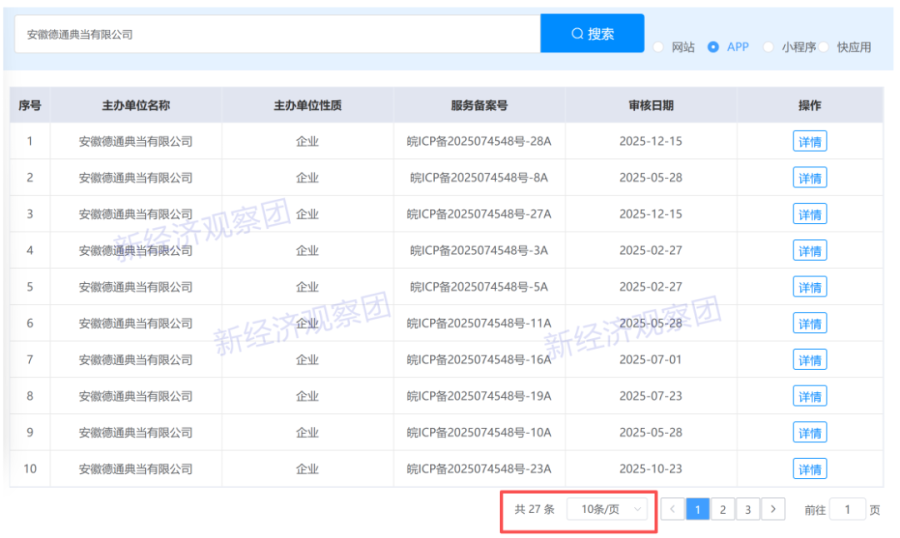 但新经济观察团在工信息相关网站查询得知,德通典当目前备案了27个贷款APP,注册时间基本上在2025年,包括微借信用贷款、来分期贷款、借钱贷款呗、放心用借钱、曹操贷款花、小象借贷、轻花优借等等,从名称上看均为现金贷或贷超产品,且名称模仿市场上较为知名的产品。