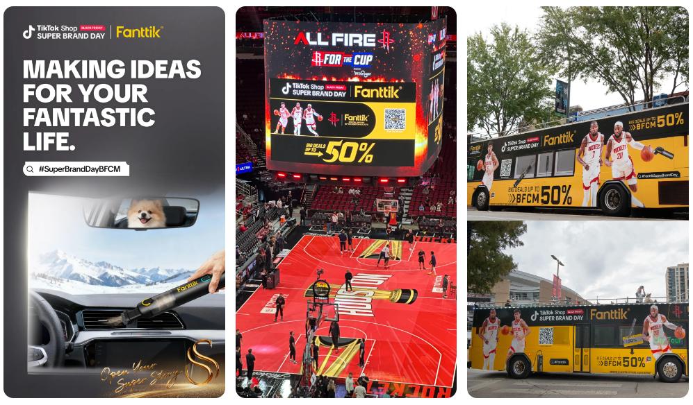还有美区跨境POP品牌Fanttik,携手休斯顿火箭队进行营销,并通过“休斯顿观光巴士活动”吸引球迷拍照打卡,引流到TikTok上互动挑战并@Fanttik官方账号,将营销融入美国主流体育文化,进而赢得了更高的知名度。
