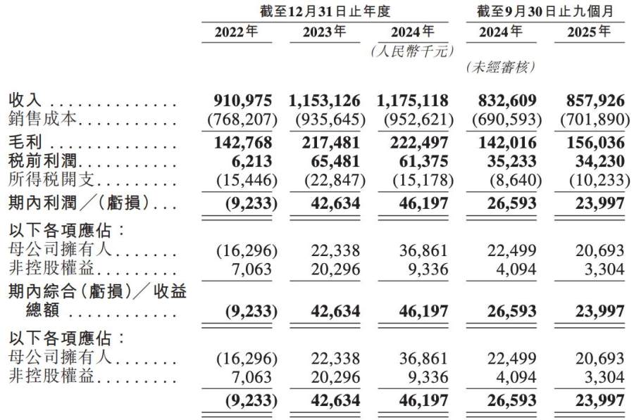 2022年、2023年、2024年度和2025前九个月(前三季度),同仁堂医养的营收分别约为9.11亿元、11.53亿元、11.75亿元和8.58亿元。其中,2023年的营收增长率为26.6%,2024年度的增幅则仅为1.9%。