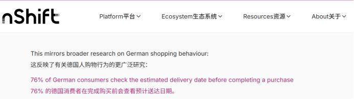 Strategy曾做过调研,43%的中东欧买家最在意的就是物流配送速度。nShift也在中欧地区做过调研,76%德国消费者会在购买前特意查看商品预计送达时间。而现实是,绝大多数电商平台针对欧洲地区的配送时效相对较低:Shein的QuickShip时效在4-6天,亚马逊平价版“Haul”在德国的配送周期也达到了7天,且时效服务需要额外付费。