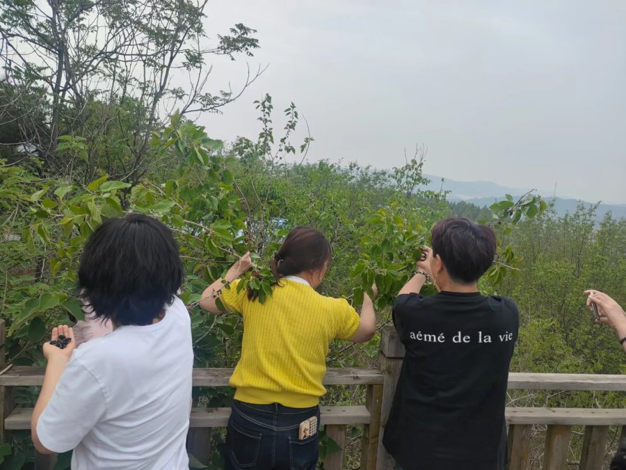路上,看到桑葚熟了,毫不犹豫下车,免费采摘。