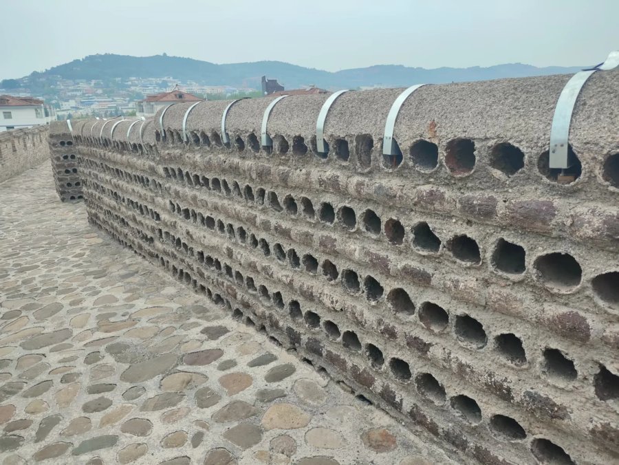 以坩埚为主体,加上沁河中的河卵石,中间则填充炼铁的废渣和石灰,这些东西混在一起不断钙化,时间越久越坚固,所以别看这城墙看起来全是洞,但比一般的青砖城墙还更加坚固。