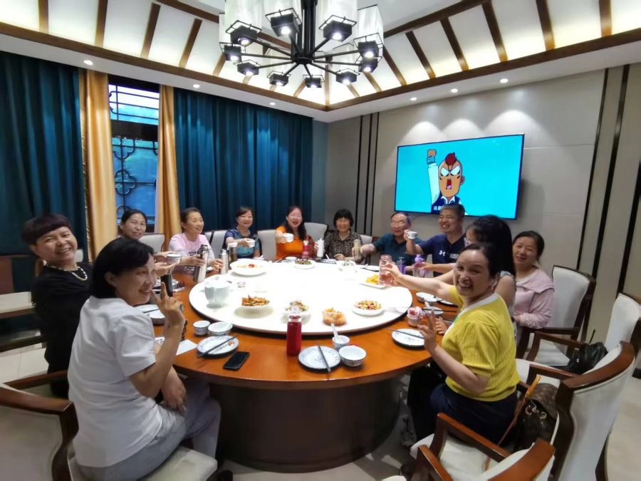 玩了一天,大家都饿了。适逢端午节,店家送了一盘粽子,一起举杯,端午安康!