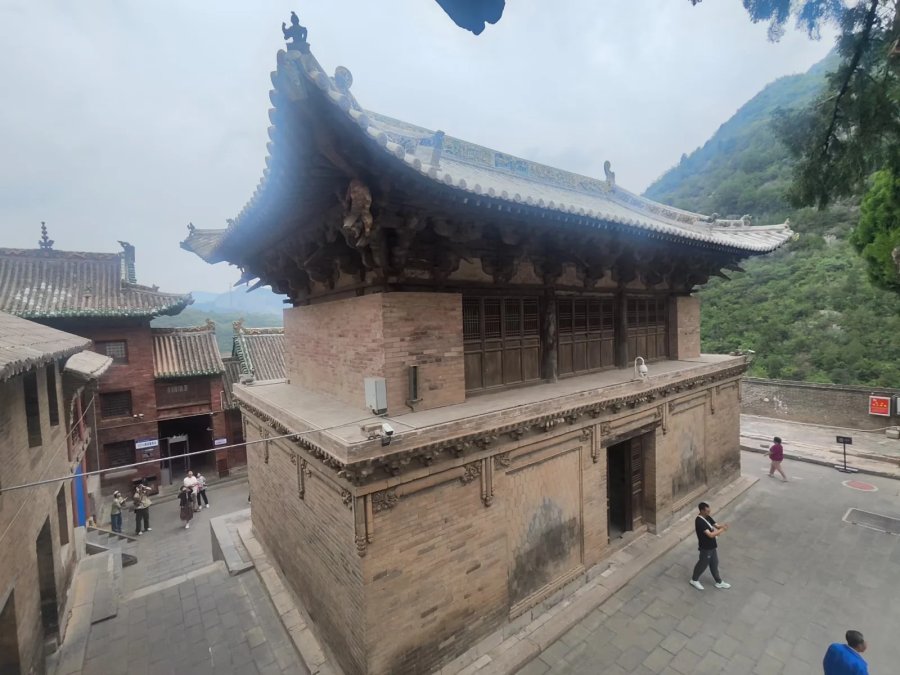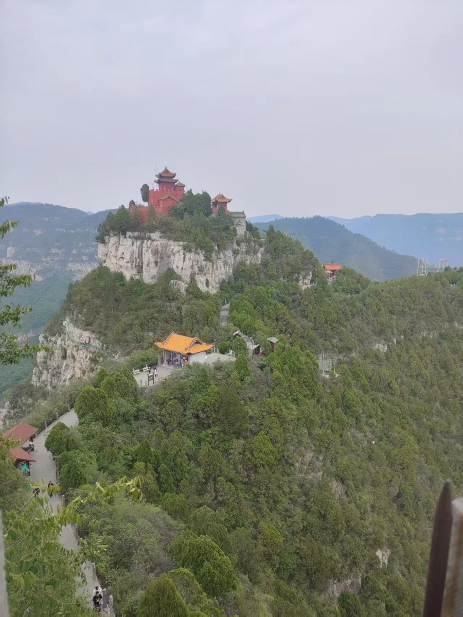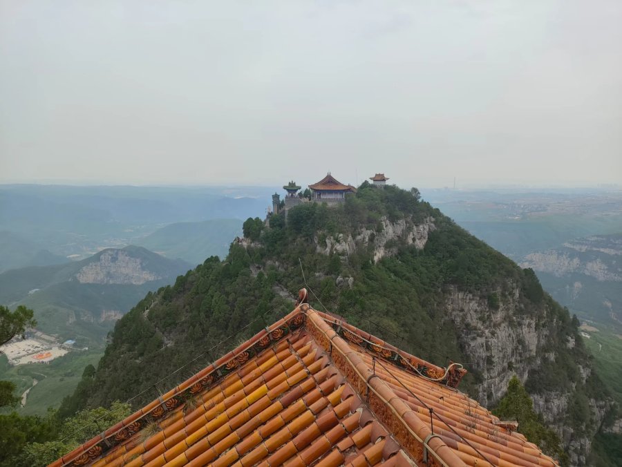 当我们踏上珏山的土地,目之所及,殿宇的华丽与檐铃的悦耳交织成曲;抬头仰望,白云轻飘在蓝天之上;低头俯瞰,林海波涛在脚下翻滚。如此美景,难怪珏山被誉为“晋魏河山第一奇”。