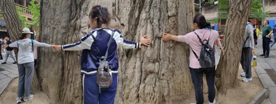 走到寺的最后面,有一对雄雌银杏树,据考证有1400多年树龄。前面这株为雌,后面这株为雄。当地人喻为夫妻树,千余年来相伴一起,不弃不离,可谓忠诚不渝。现在,千年古树需要几个人合抱,才可以环绕一圈。