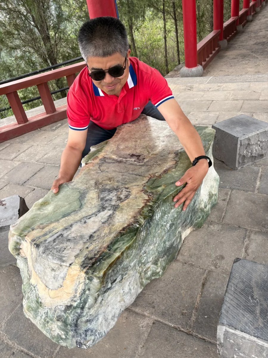 下山途中,在一个凉亭休息,突然发现,这里竟然有一块玉石原石。我去!发财了。同行的三位美女也看呆了,把难题交给我,想办法怎么弄下山。