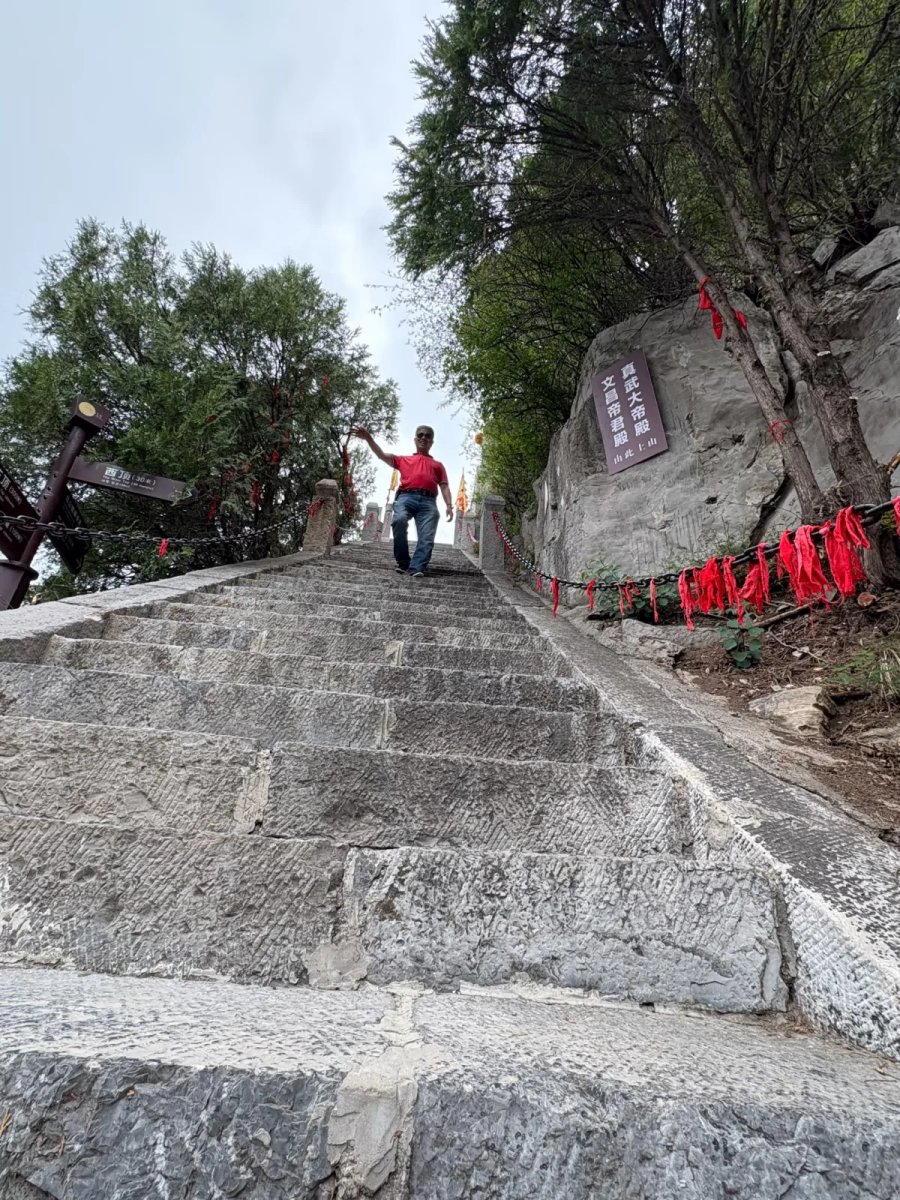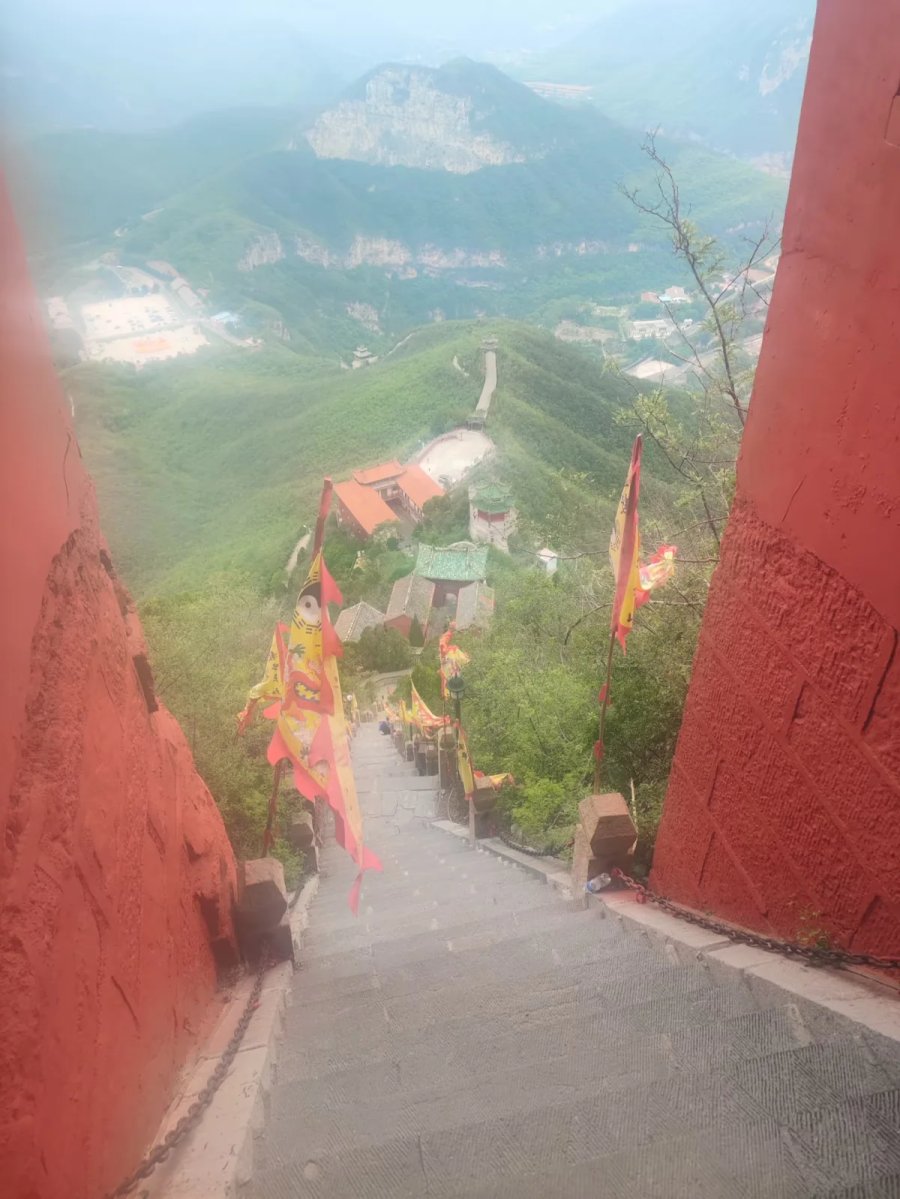 217级台阶,垂直高差竟达65米,最陡峭之处近乎60度倾斜。这些石阶狭窄,仰角极大,无论是向上攀登还是下山,都必须紧紧抓住石阶边上的铁链,才能确保身躯的稳固。