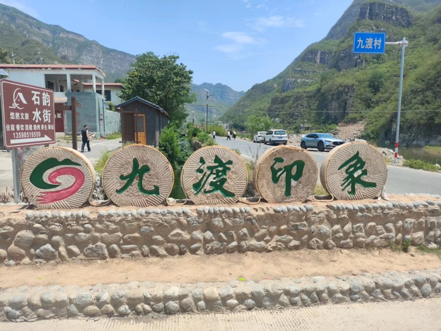 九渡村因位于沁阳丹河岸边的第九个渡口而得名,村子紧挨丹河峡谷,峡谷内景观多姿多彩,空气清新,青山绿水,风景美不胜收。丹河峡谷山水有着 “豫北小桂林”的美誉。