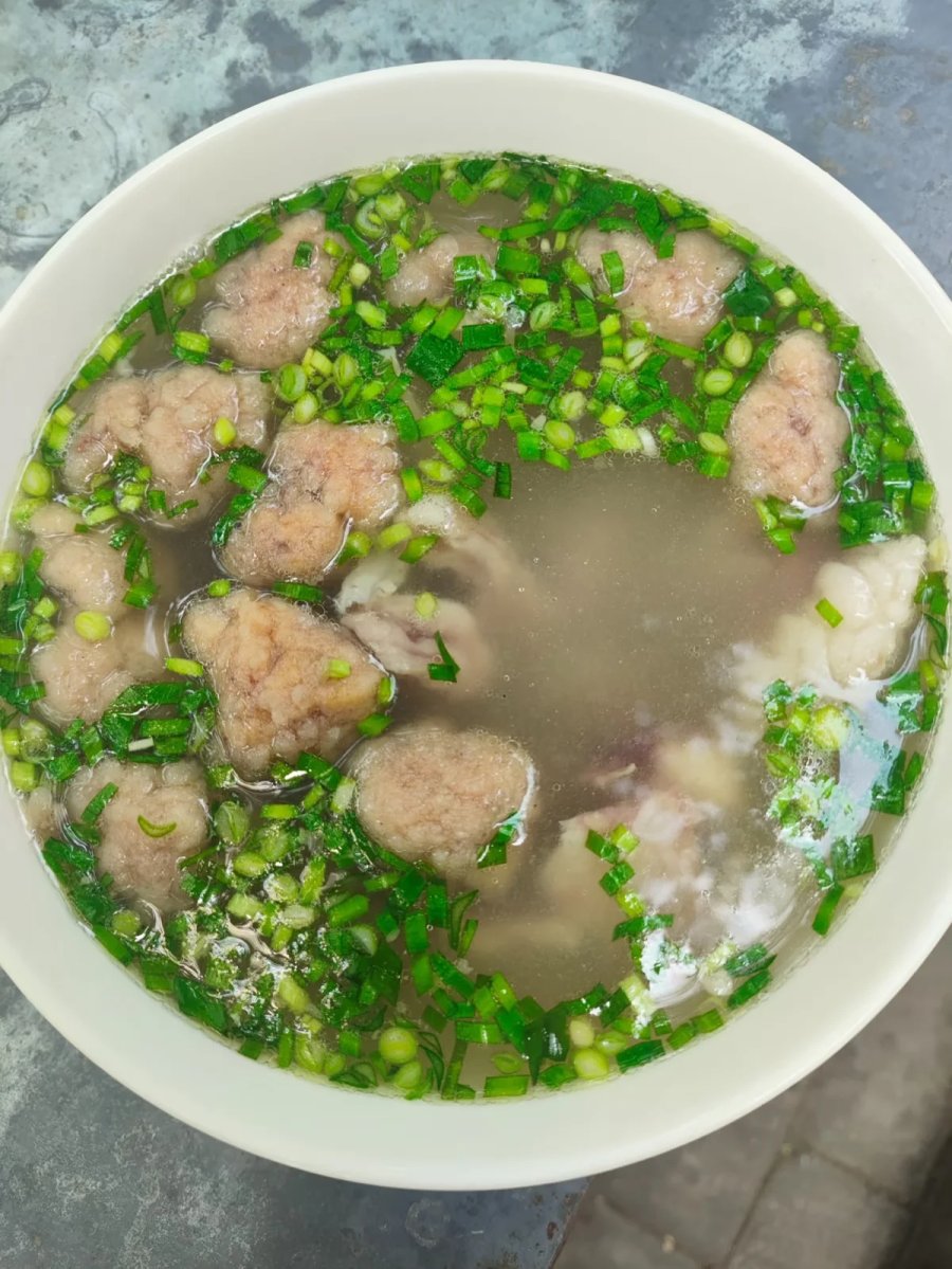 这碗牛肉丸子汤,看着就很有食欲!一个个饱满的肉丸,静静卧在清澈汤里,翠绿葱花星星点点洒落,瞬间把质朴的汤衬得鲜活。想象一下,舀一勺汤入口,鲜气直钻鼻腔,咬口弹润肉丸,肉香混着葱香在舌尖散开,简单又治愈,妥妥的人间小美好 。